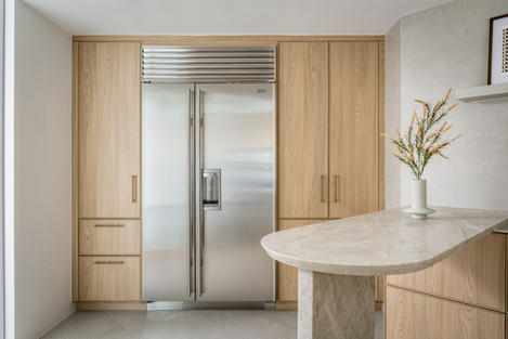 The client approached us to refurbish their kitchen and bathrooms. The design focused on elegance and clean lines, expressed through fine materials and the client’s carefully selected appliances, which required precise detailing and installation. Thoughtful lighting design was key to brightening a naturally darker flat, helping the spaces feel airy, calm, and welcoming.